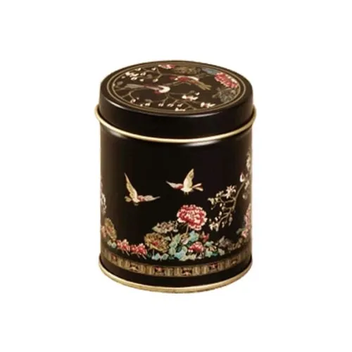 Банка изготовлена из жести. Плотно закрывающаяся крышка обеспечивает герметичность. Дизайн с изображением райских птиц выполнен на поверхности жести.