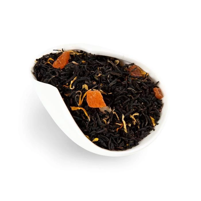 Состав: чёрный чай, цукаты, лепестки календулы, ароматизатор