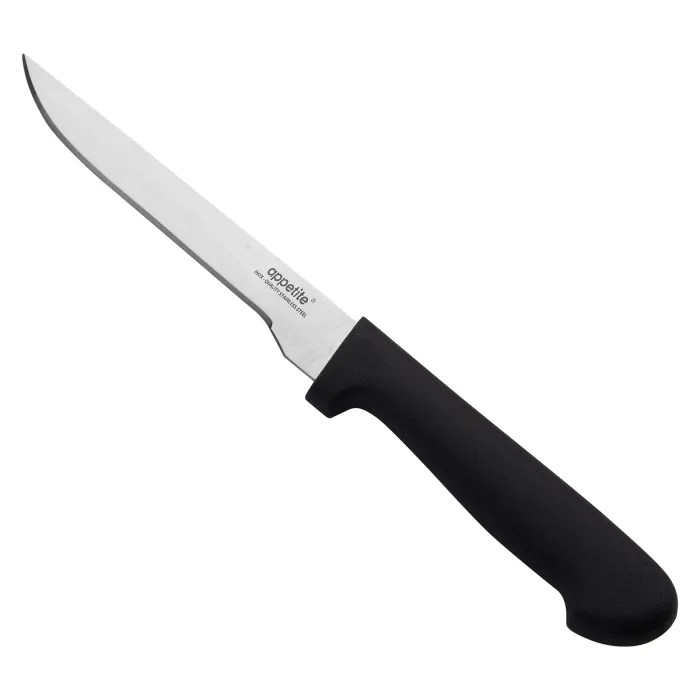 Универсальный нож ТМ Appetite предназначен для нарезки овощей, фруктов, мяса и рыбы. Инструмент изготовлен из нержавеющей стали, что обеспечивает его прочность и долговечность.