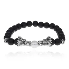 Браслет с бусинами Дзи 3 глаза и Двойной клык тигра, натуральный агат BSDZ-039
