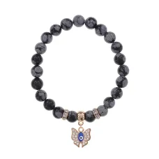 Браслет Бабочка (Свобода и счастье) нат.камень Снежный обсидиан 8мм BS-CR-0164