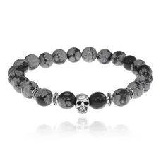 Браслет Кошка (защита, интуиция, достаток) нат.камень Снежный обсидиан 8мм BS-CR-0464