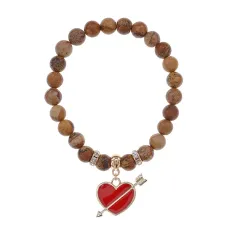 Браслет Сердце со стрелой (любовь) нат.кам. Песочная яшма 8мм BS-CR-1110
