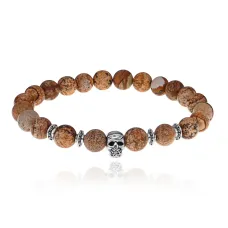 Браслет с 3-глазой бусиной Дзи и нат.камнем Африканский агат BSDS8-17-04