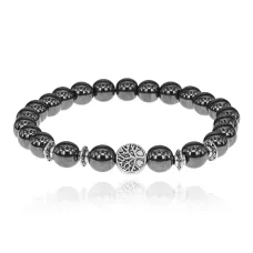 Браслет Дерево жизни с синт. камнем Гематит (не магнит.) 8мм BSHE-05-28S