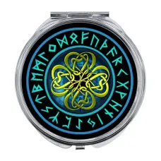 Браслет с рунами под золото Защитный щит Зеркало, с синт. камнем Шунгит 10мм BSR2-075
