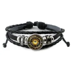 Браслет со славянской руной Алатырь и синт.камнем Лунный камень BSRK-03-11