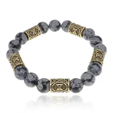 Браслет с 3-глазой Дзи, нат. рудракшей и синт. камнем Лунный камень BSDR-03-11