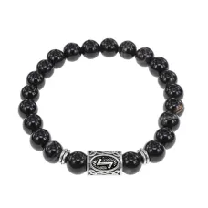Браслет с Дзи и подвеской Ом (защита, духовное развитие), лава 10мм BSPD10-01-0013