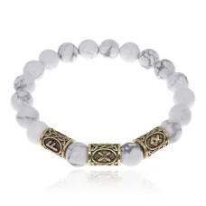 Браслет с рунами под золото Укрепление семьи, с нат. камнем Кахолонг 10мм BSR2-035