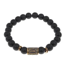 Браслет со славянской руной Сила и нат.камнем Черный агат, 8мм BSRN-08-23