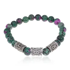Рунический браслет Сдвиг в отношениях с синт.камнем Цоизит 8мм BSRH1-025