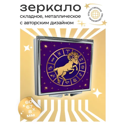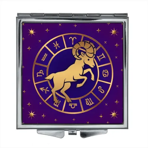 Складное зеркало квадратной формы с изображением знака зодиака Овен. Сувенирный аксессуар.