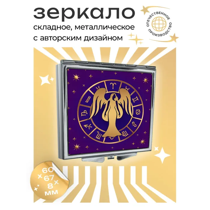 Складное зеркало квадратной формы с полноцветным изображением. Предназначено для личного использования.