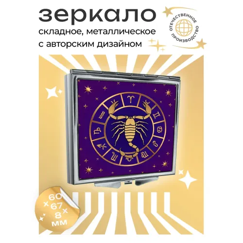 Складное зеркало квадратной формы с изображением Скорпиона. Изготовлено из металла и стекла.