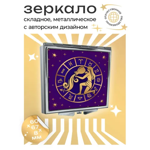 Складное квадратное зеркало с изображением знака зодиака Водолей. Материалы: металл и стекло.