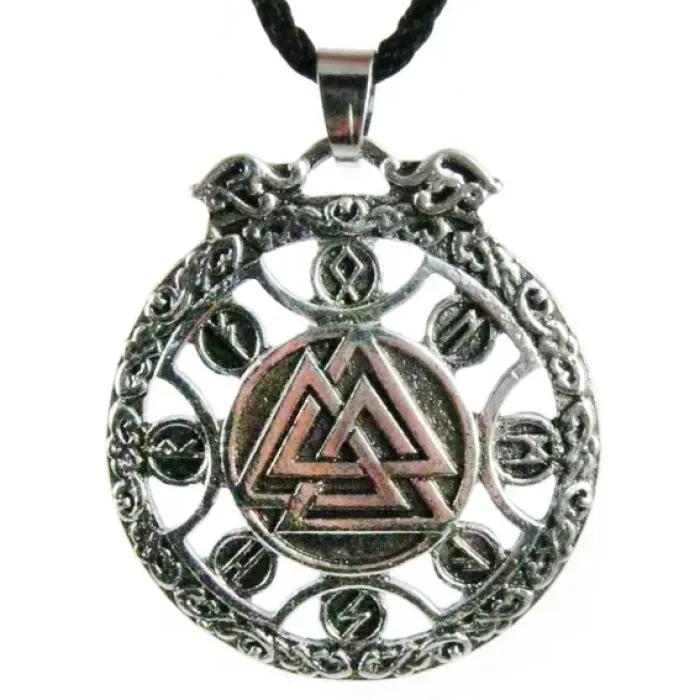 Металлический амулет «Валькнут» скандинавской символики.