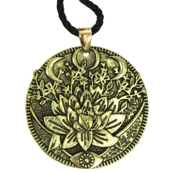 Металлический амулет в форме лотоса диаметром 39 мм.