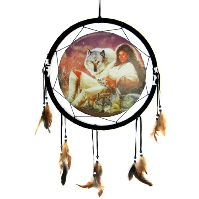 Панно круглое Волк и Девушка 38см ткань M209-29