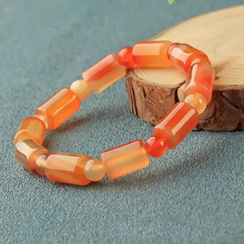 Стрейч-браслет из натурального агата оранжевого цвета.