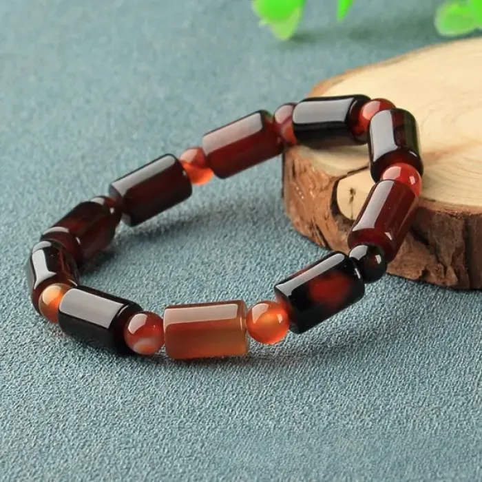 Браслет из натурального агата коричневого цвета. Стрейч-браслет с бусинами.