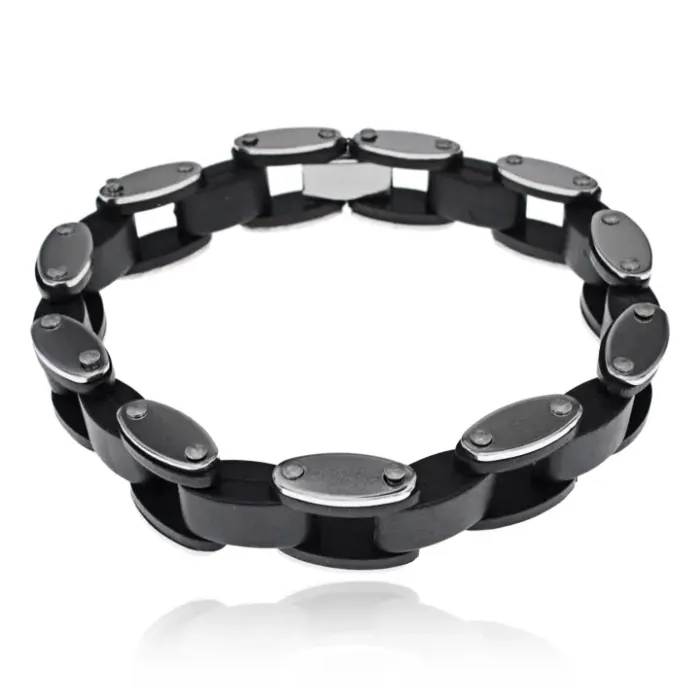 Мужской браслет Цепь с черными вставками, 21см BS579