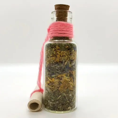 Бутылочка желаний «КРАСОТА И МОЛОДОСТЬ» — сувенир с травяным сбором и свитком для записи.