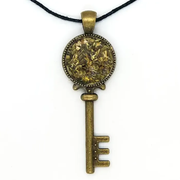 Сувенирная подвеска в форме ключа, наполненная пижмой. Материалы: пижма, металл, стекло.