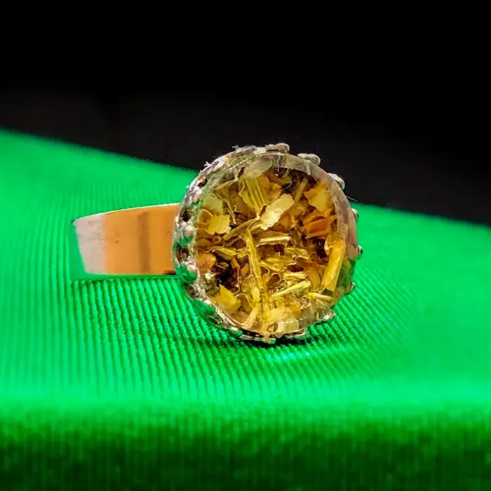 Обережное кольцо из металла и стекла с натуральной пижмой.