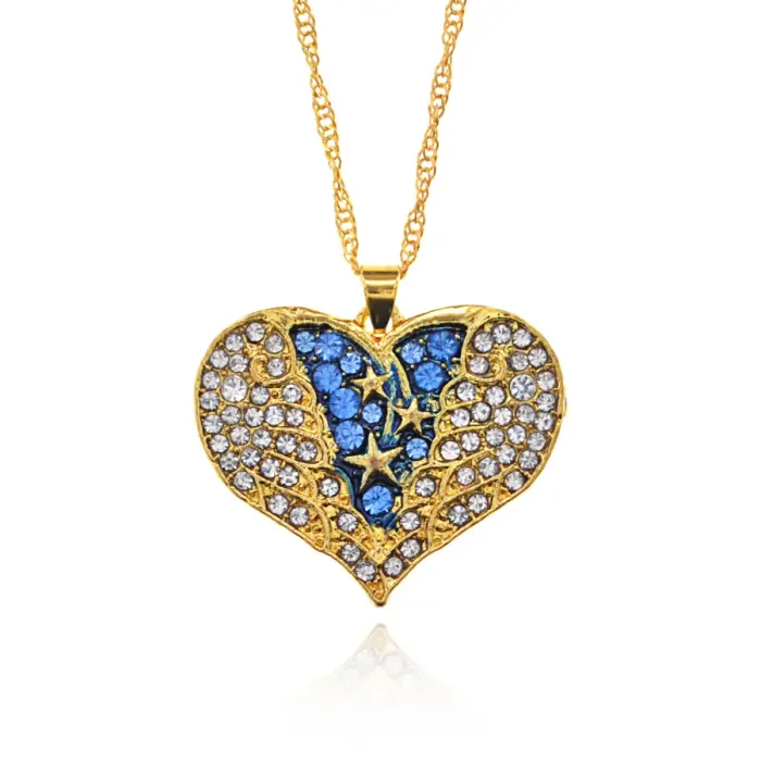 Кулон в виде сердца с крыльями ангела. Материал — бижутерный сплав с покрытием под золото и вставками из страз.