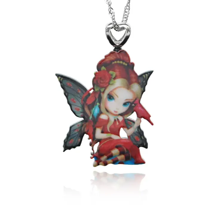 Кулон из бижутерного сплава и пластика в виде феи с птицами.