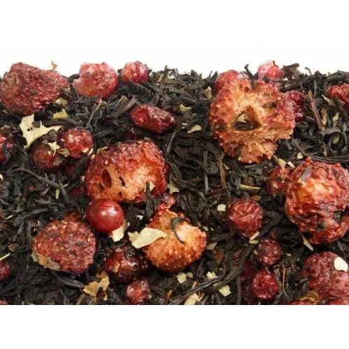 Крупнолистовой чёрный чай с добавлением целых ягод и листьев создаёт насыщенный, яркий настой. Его характер определяют сладкие ягодные ноты спелой брусники и клубники, переходящие в конфетное послевкусие.