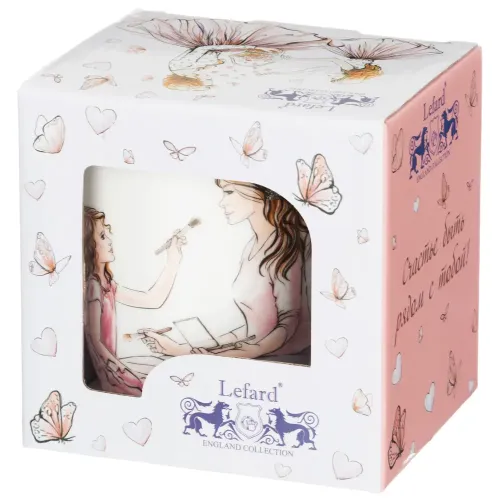 Кружка объёмом 400 мл от бренда Lefard предназначена для подачи горячих и холодных напитков. Изделие относится к серии «Мамины кружки» и изготовлено из костяного фарфора, что обеспечивает прочность и лёгкость.