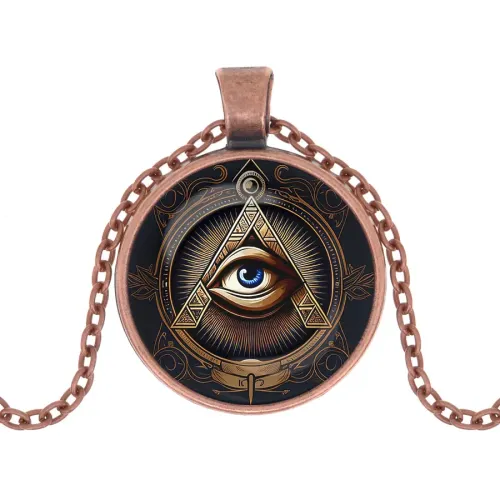 Кулон с цепочкой Всевидящее око — это стильный амулет, который символизирует защиту и мудрость. Изготовленный из бижутерного сплава с медным покрытием, он привлекает внимание своим эффектным дизайном благодаря изображению под выпуклой стеклянной линзой. Основные особенности: