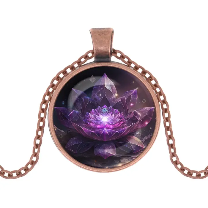 Кулон с цепочкой Лотос — это стильный амулет, выполненный из бижутерного сплава с медным покрытием. Символ лотоса олицетворяет чистоту и духовное развитие, что делает этот кулон не только украшением, но и источником вдохновения. Изображение под выпуклой стеклянной линзой создает эффектный визуальный акцент, привлекая внимание окружающих.
