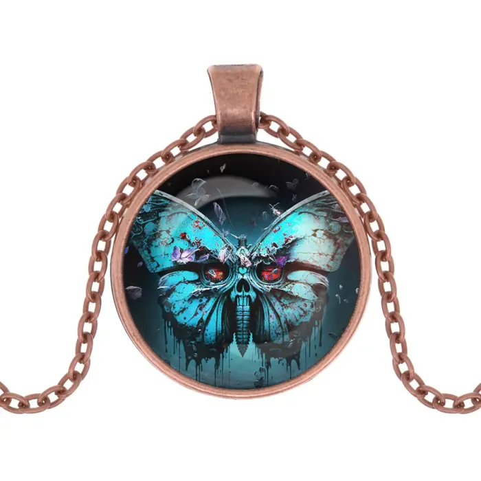 Кулон с изображением мотылька и черепа — это стильный амулет, который привлекает внимание и подчеркивает индивидуальность. Изготовленный из бижутерного сплава с медным покрытием, он отличается эффектным внешним видом благодаря выпуклой стеклянной линзе, которая придаёт глубину изображению.