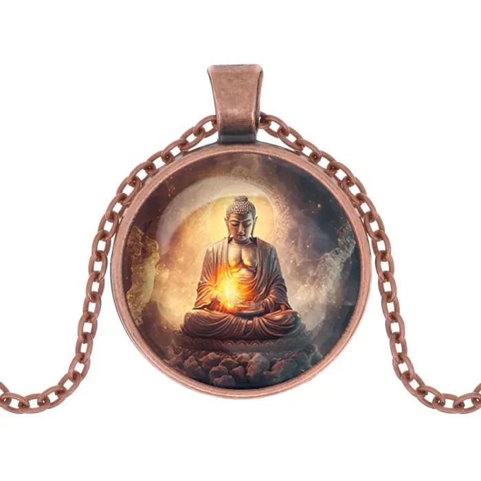 Кулон с изображением Будды — это не просто украшение, но и символ спокойствия и гармонии. Изготовленный из бижутерного сплава с медным покрытием, он привлекает внимание благодаря эффектному виду изображения под выпуклой стеклянной линзой.