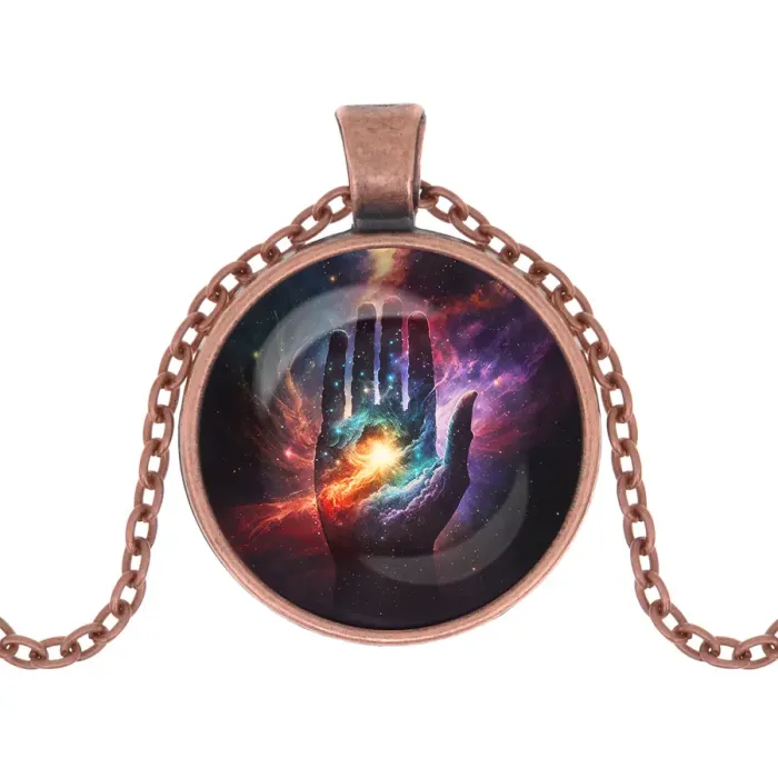 Кулон-амулет "Ладонь Творца" — это не только стильный аксессуар, но и символ защиты и вдохновения. Изготовленный из бижутерного сплава с медным покрытием, он привлекает внимание своим эффектным изображением под выпуклой стеклянной линзой. Основные особенности: