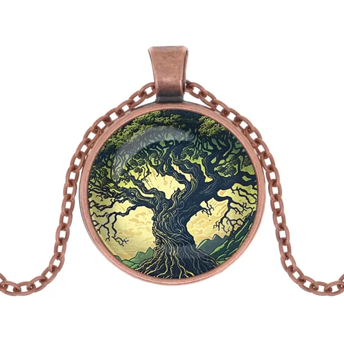 Кулон с цепочкой «Дерево жизни» — это стильный амулет, который символизирует гармонию и связь человека с природой. Изготовленный из бижутерного сплава с медным покрытием, он привлекает внимание своим эффектным дизайном благодаря изображению под выпуклой стеклянной линзой.