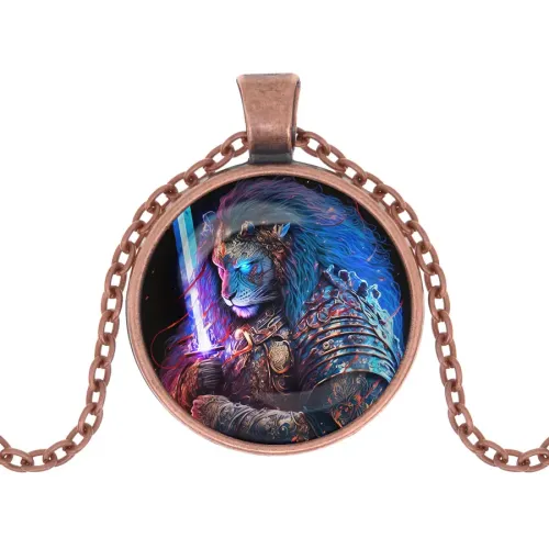 Кулон с изображением льва — это не только стильный аксессуар, но и символ силы и мужества. Изготовленный из бижутерного сплава с медным покрытием, он привлекает внимание благодаря эффектному виду изображения под выпуклой стеклянной линзой.