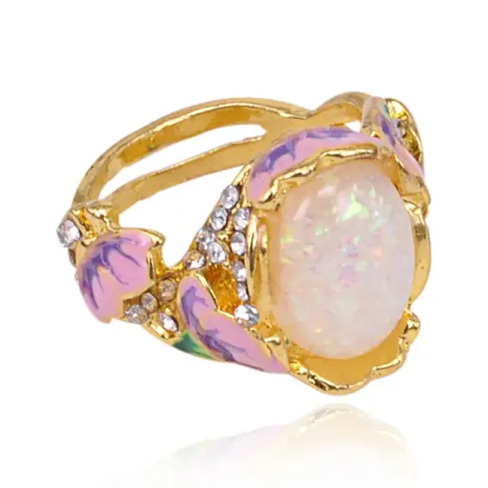Бижутерное кольцо с дизайном в виде цветочного букета, покрытием под золото и эмалью.