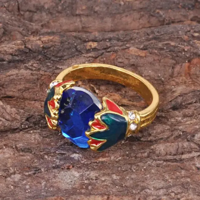 Кольцо из бижутерного сплава с кристаллами и эмалью.