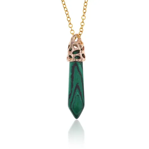Материал и изготовление: Синтетический малахит, металл с покрытием под золото. Замок типа лобстер.
