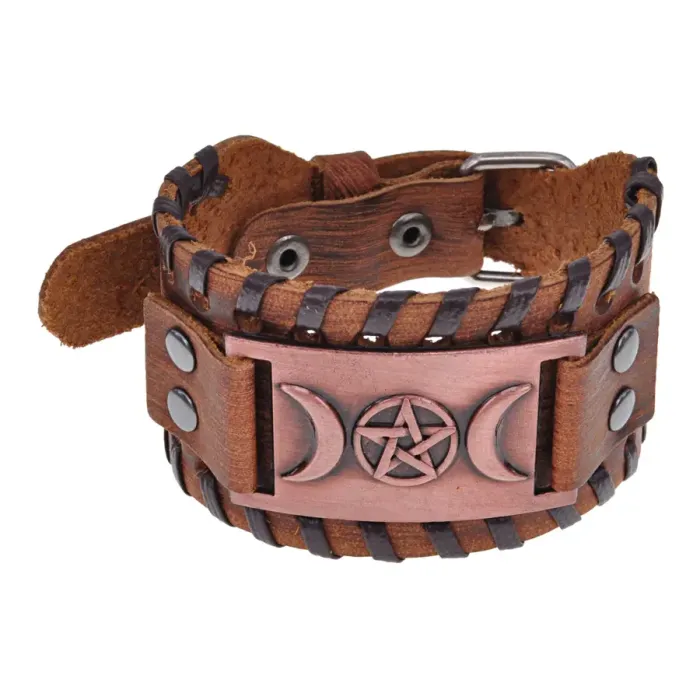 Кожаный браслет с металлическими элементами в дизайне «Звезда и Месяцы».