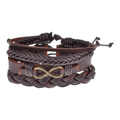 Набор из трёх браслетов. Материал: натуральная кожа и металл с покрытием под бронзу. Дизайн с символом бесконечности.