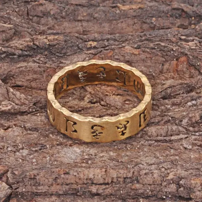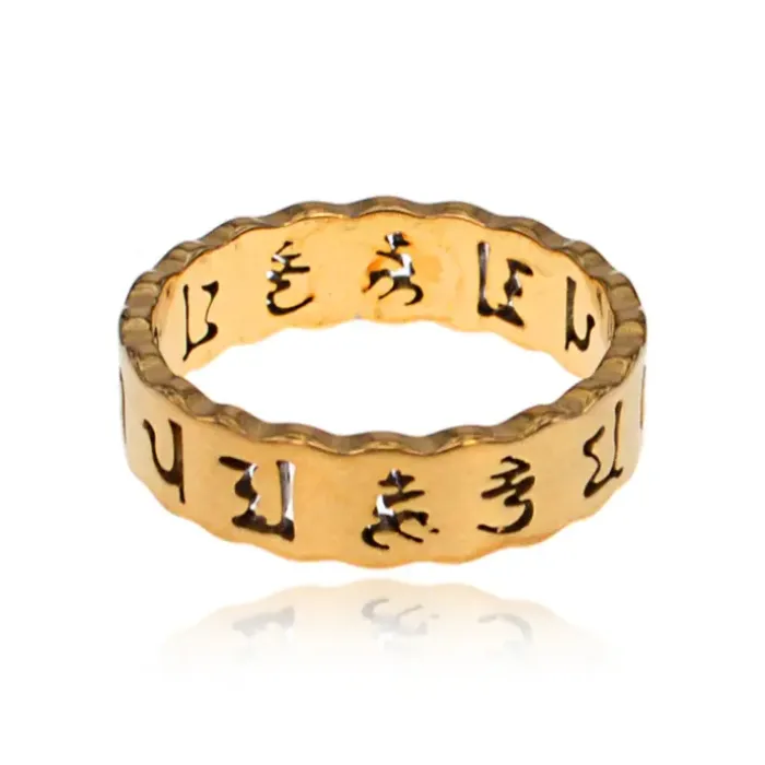 Кольцо из стали с золотым покрытием и символическим дизайном.