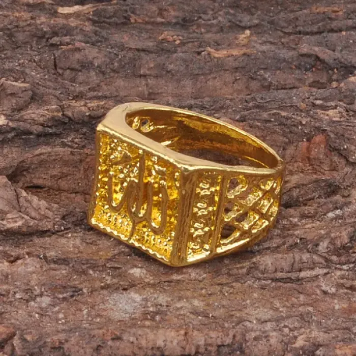 Кольцо с арабской надписью, металл с золотым покрытием, размер 9.