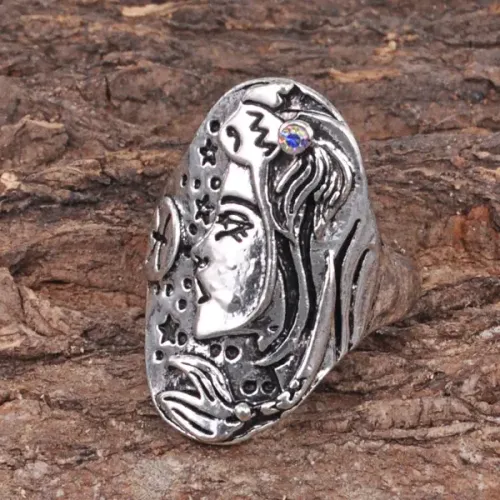 Кольцо с изображением знака зодиака Рыбы. Изготовлено из металла с покрытием под серебро, имеет вставку из страза.