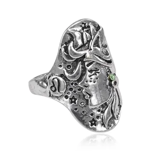 Кольцо с символом знака зодиака Лев. Изготовлено из металла с покрытием под серебро и декоративной вставкой.