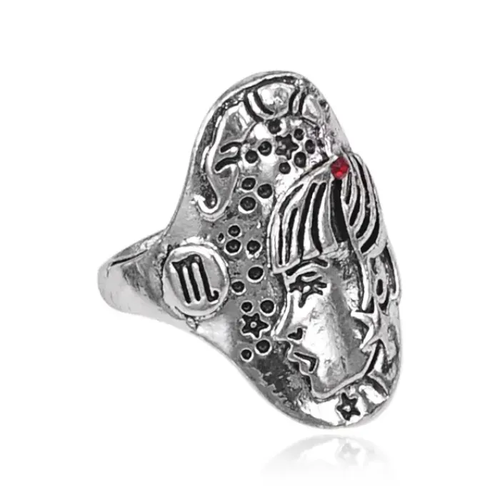 Кольцо с символом знака зодиака Скорпион. Изготовлено из металла с покрытием под серебро, имеет вставку из страза.